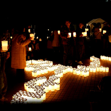 かつての運河とまちの歴史、人々の感謝と祈りを、再び水辺に。人が集うところには、昔から「あかり」がありました。今年のキャナルアートでは、オープニングにあかりを紡いで、水辺にくらす・集う人々の思いをつなぎ、ともに 中川運河のいまとこれからを"感じる"ことができればと願います。太古からのあかりの源、炎。中川運河に集まるみなさんの手でキャンドルに火を灯し、時間と空間の交わる瞬間をともに体感しましょう。あかりを包むシェードに、思い思いの絵やメッセージを描いてみませんか?当日会場にて自由にご参加いただけます。